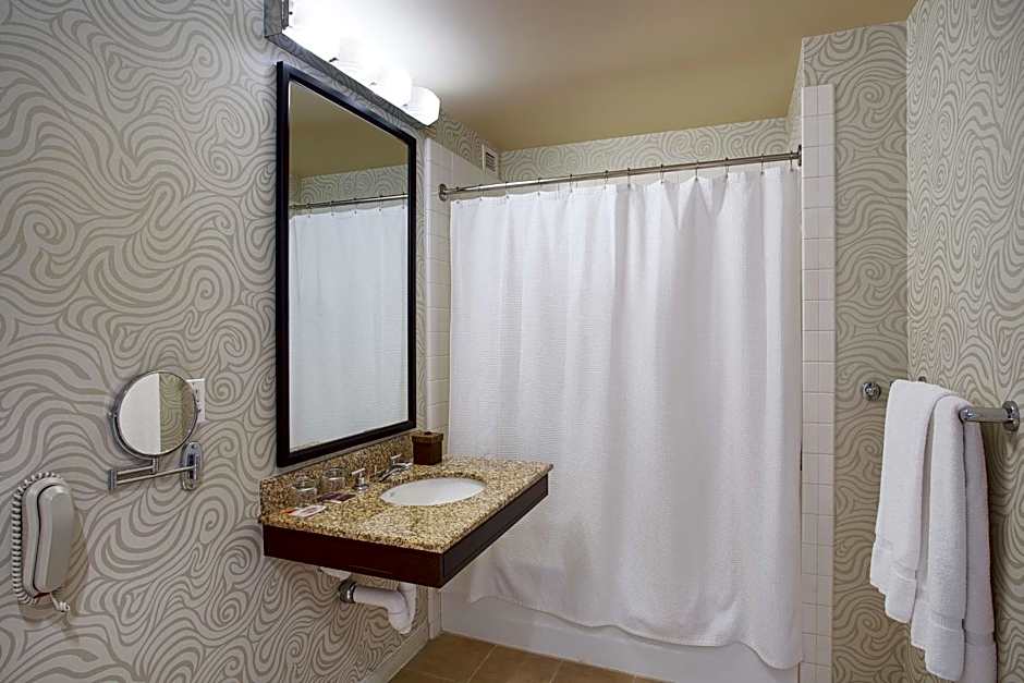 This accessible room offers a roll-in shower. A flat-screen TV, a work desk, and an in-room laptop safe are included. A hairdryer, make up mirror, and premium bath amenities are provided in the private bathroom.